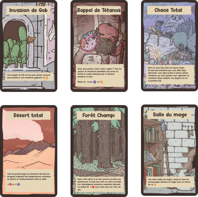 La combinaison unique résultante de ces trois cartes créera la situation que le joueur va devoir résoudre.