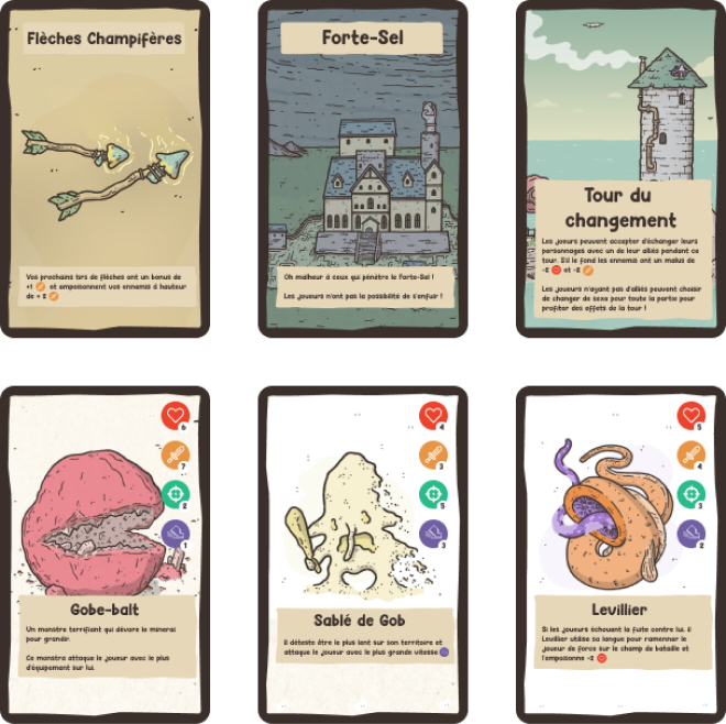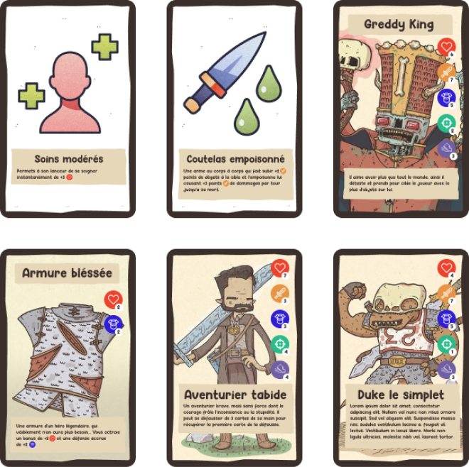 La composante Rogue-like repose sur la capacité du jeu à proposer des situations diverses et unique pour se faire le joueur va devoir piocher parmi 3 cartes : une carte localisation, une carte ennemi et une carte événement spécial. La résultante de ces cartes va créer une situation que le joueur va devoir résoudre.