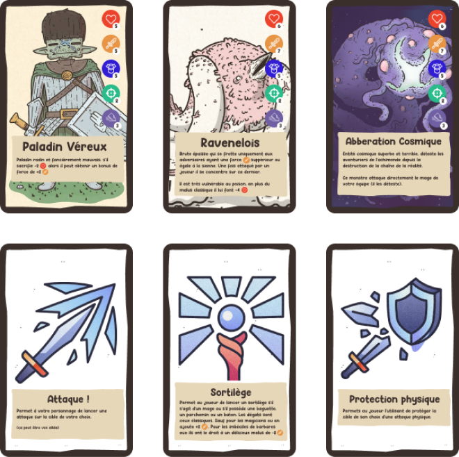 Pour résoudre une situation les joueurs auront accès à un deck de carte action qui leur permettra d'attaquer de se défendre de s'enfuir ou de coopérer, ou pas, avec d'autres joueurs.