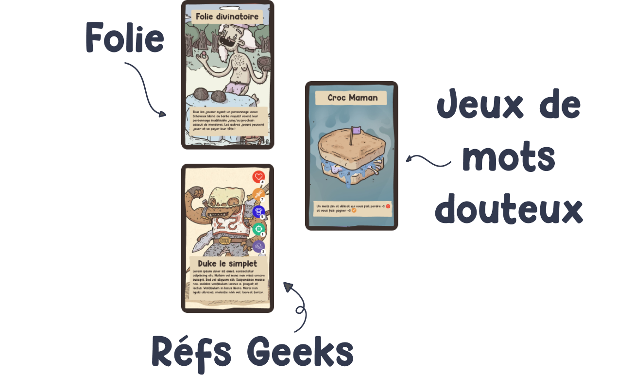 - Public Cible : Joueurs fans de fantaisie et d’humour absurde, mais également les familles qui sont sensibles aux parties sociales avec leurs enfants mais qui on peur de l’apprentissage d’un jeu de rôle classique.