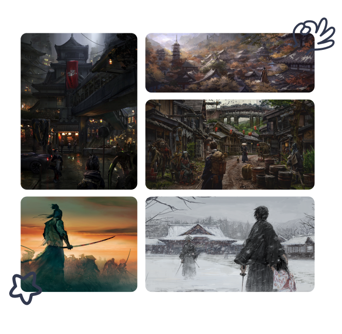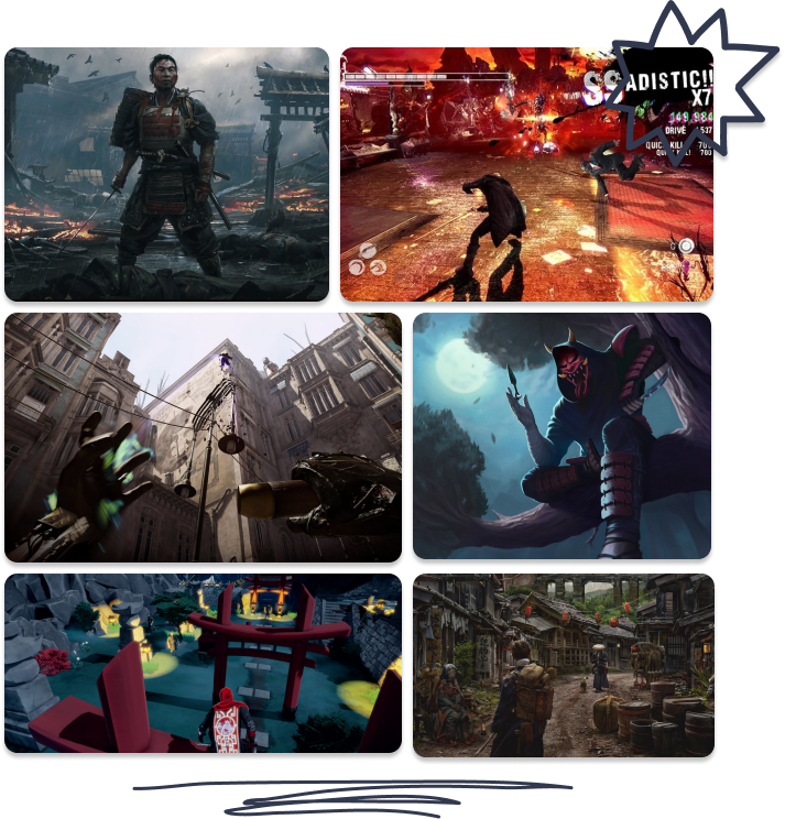 L'expérience de jeu que je voulais créer se devait d'être à la fois entre de la discrétion mais en mélange d'action rapide et effrénées. Un mélange des jeux comme : Aragami, Shadow warrior, Dishonored et Devil may cry.
